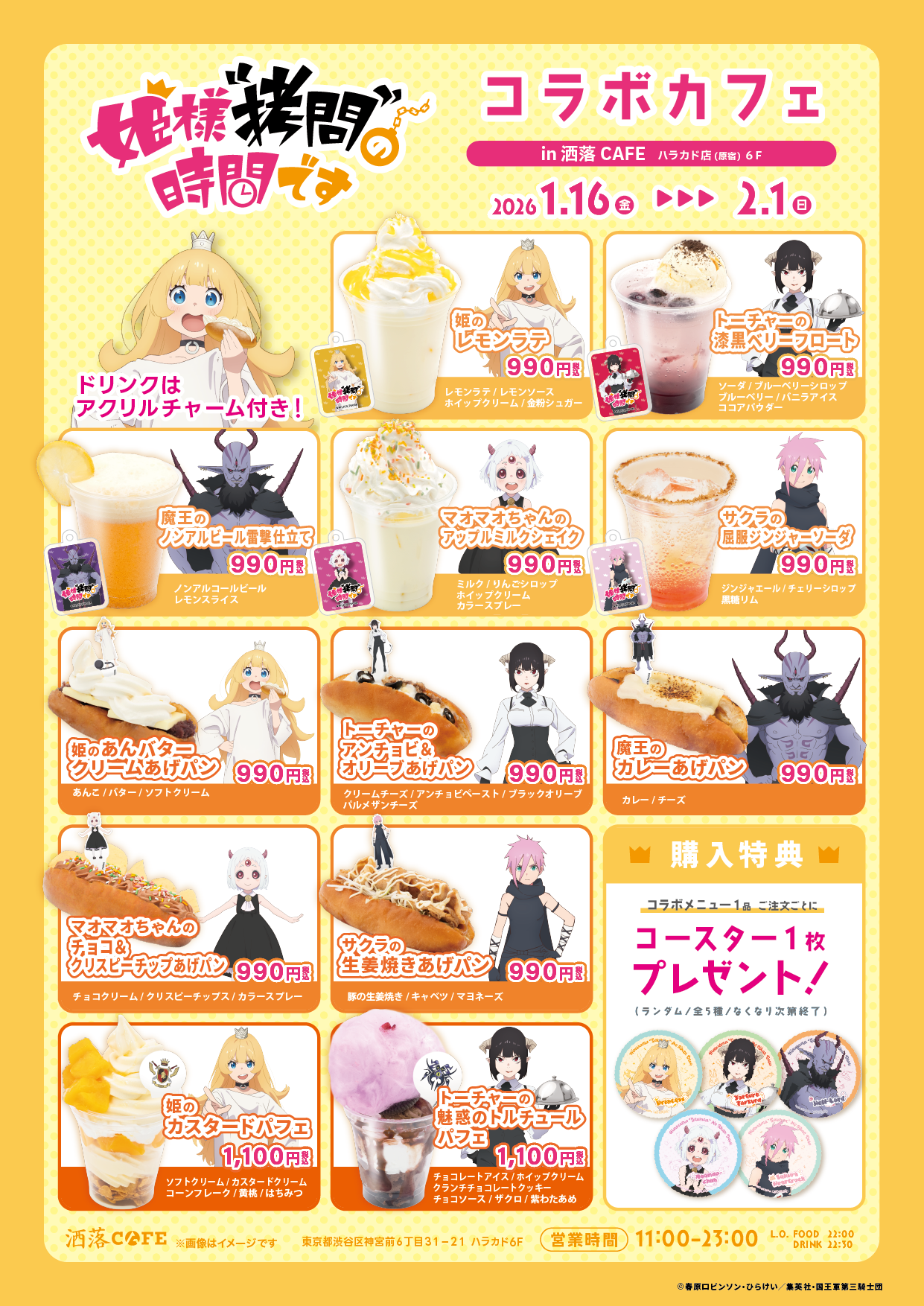2026年1月16日(金)より、TVアニメ『姫様“拷問”の時間です』のコラボカフェと描き下ろしオリジナルグッズの販売を、東京・原宿の「洒落CAFE(東急プラザ原宿「ハラカド」内)」にて開催いたします。